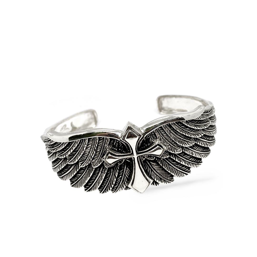 Handcrafted Sterling Silver Feather Cross Cuff