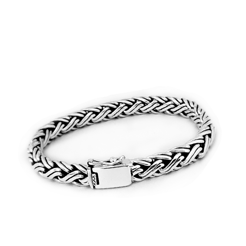 9X6mm Breaded Handcrafted Sterling Silver Bracelet with snap closer