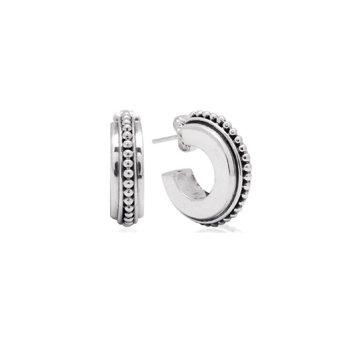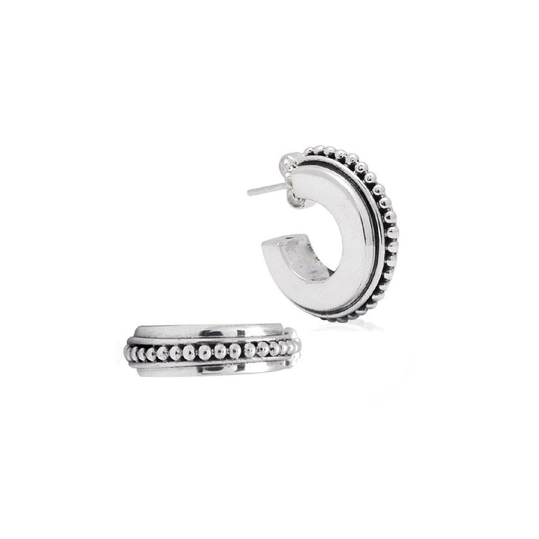 Handcrafted sterling silver hoop decorated with granulation.