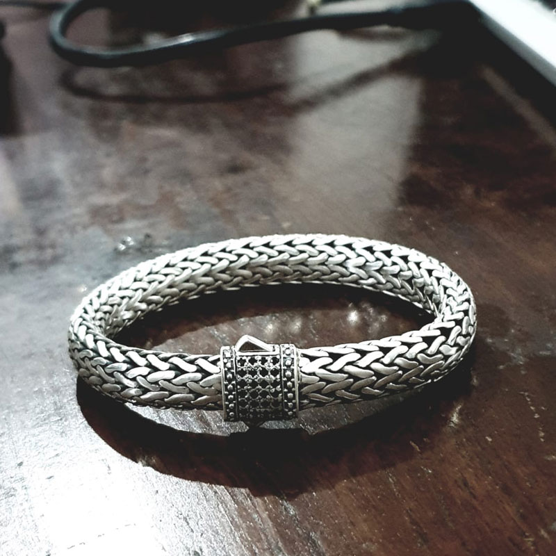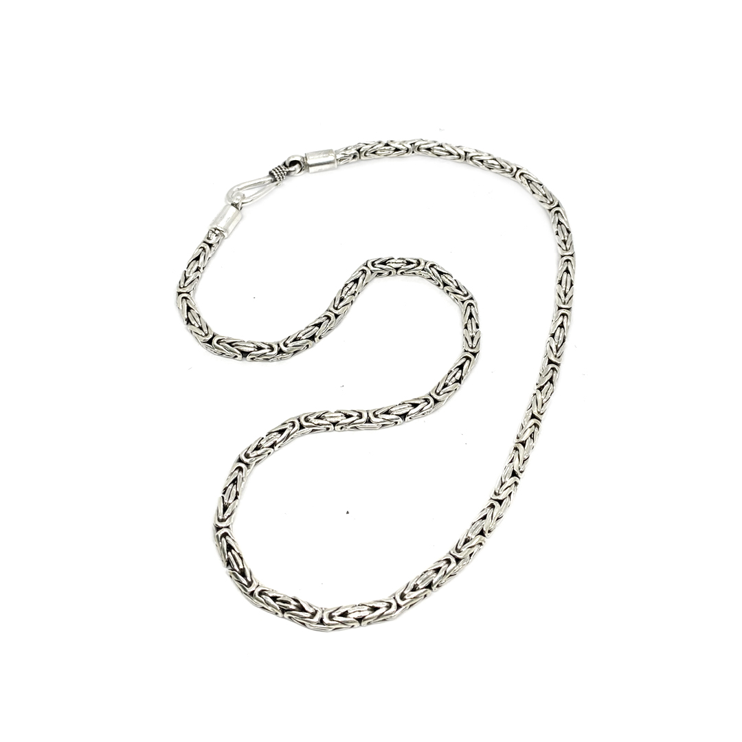 The Handcrafted Sterling Silver 4mm Borobudur Necklace with Hook Closer draws inspiration from the ancient Borobudur Temple, symbolizing spiritual enlightenment and harmony. Its intricate woven design reflects Balinese craftsmanship, representing strength and unity. A refined statement of tradition and elegance.