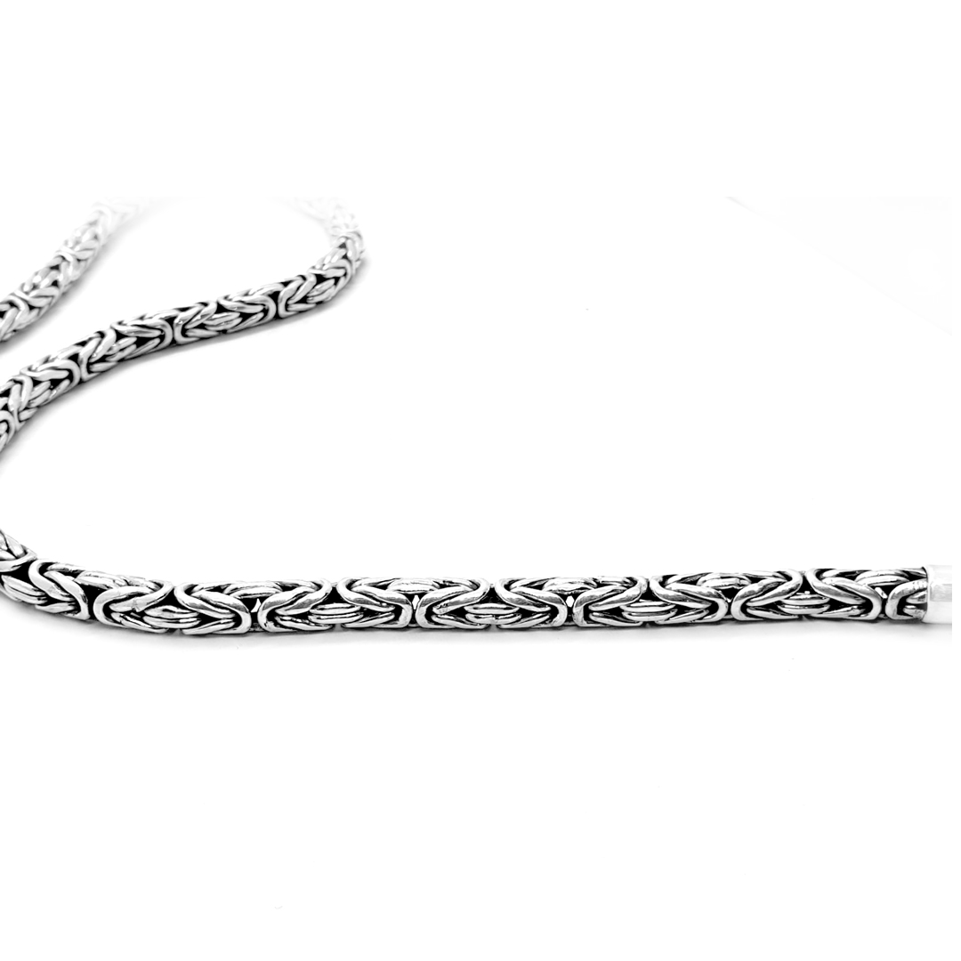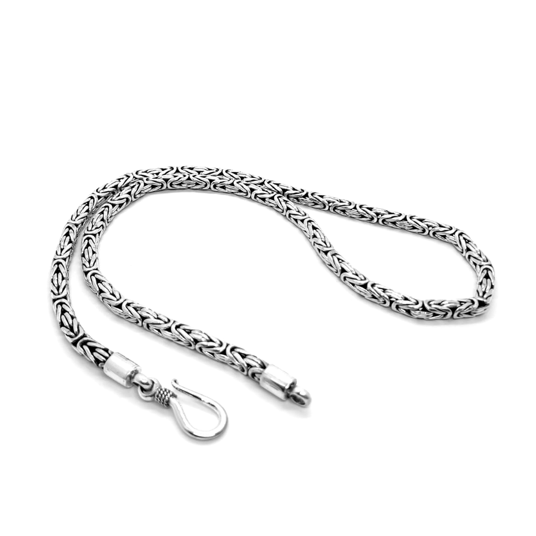 The Handcrafted Sterling Silver 5mm Borobudur Necklace with Hook Closer draws inspiration from the ancient Borobudur Temple, symbolizing spiritual enlightenment and harmony. Its intricate woven design reflects Balinese craftsmanship, representing strength and unity. A refined statement of tradition and elegance.