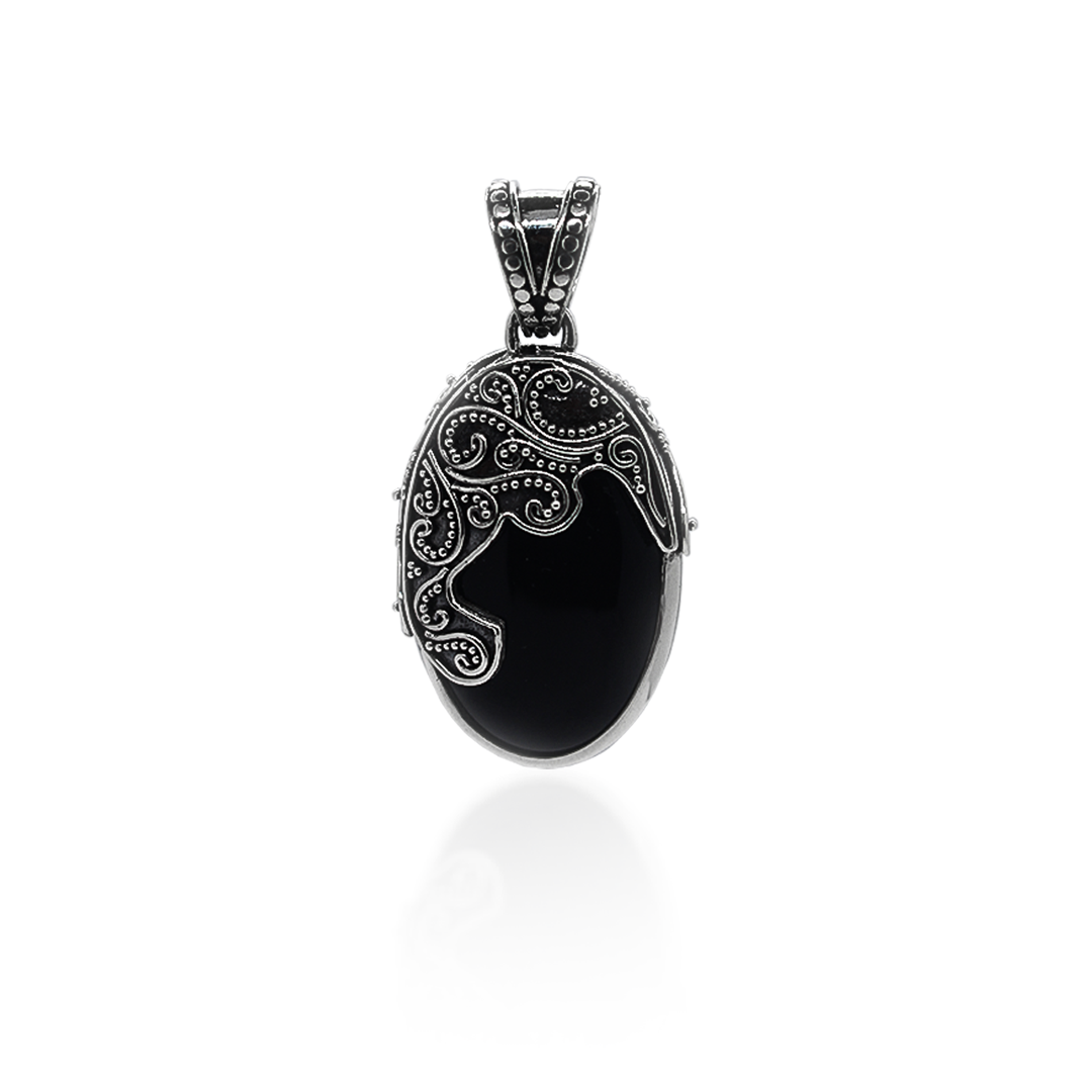 Handcrafted Sterling Silver Pendant with Onyx Stone and Filigree Decoration is a masterpiece of jewelry that combines the elegance of pure silver with the deep black Onyx, symbolizing strength and resilience. Onyx has long been revered as a protective stone that brings courage and emotional stability. Adorned with intricate filigree carvings, this pendant showcases traditional craftsmanship passed down through generations, creating a perfect harmony between classic aesthetics and spiritual significance.