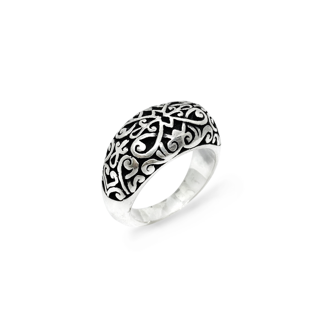 Sterling Silver Toraja Ring. This Sterling is inspired by traditional Torajan carvings that symbolize life, balance, and spirituality. Often seen in Tongkonan houses, these intricate patterns reflect the connection between humans, nature, and their ancestors. More than just an accessory, this ring carries deep cultural significance.